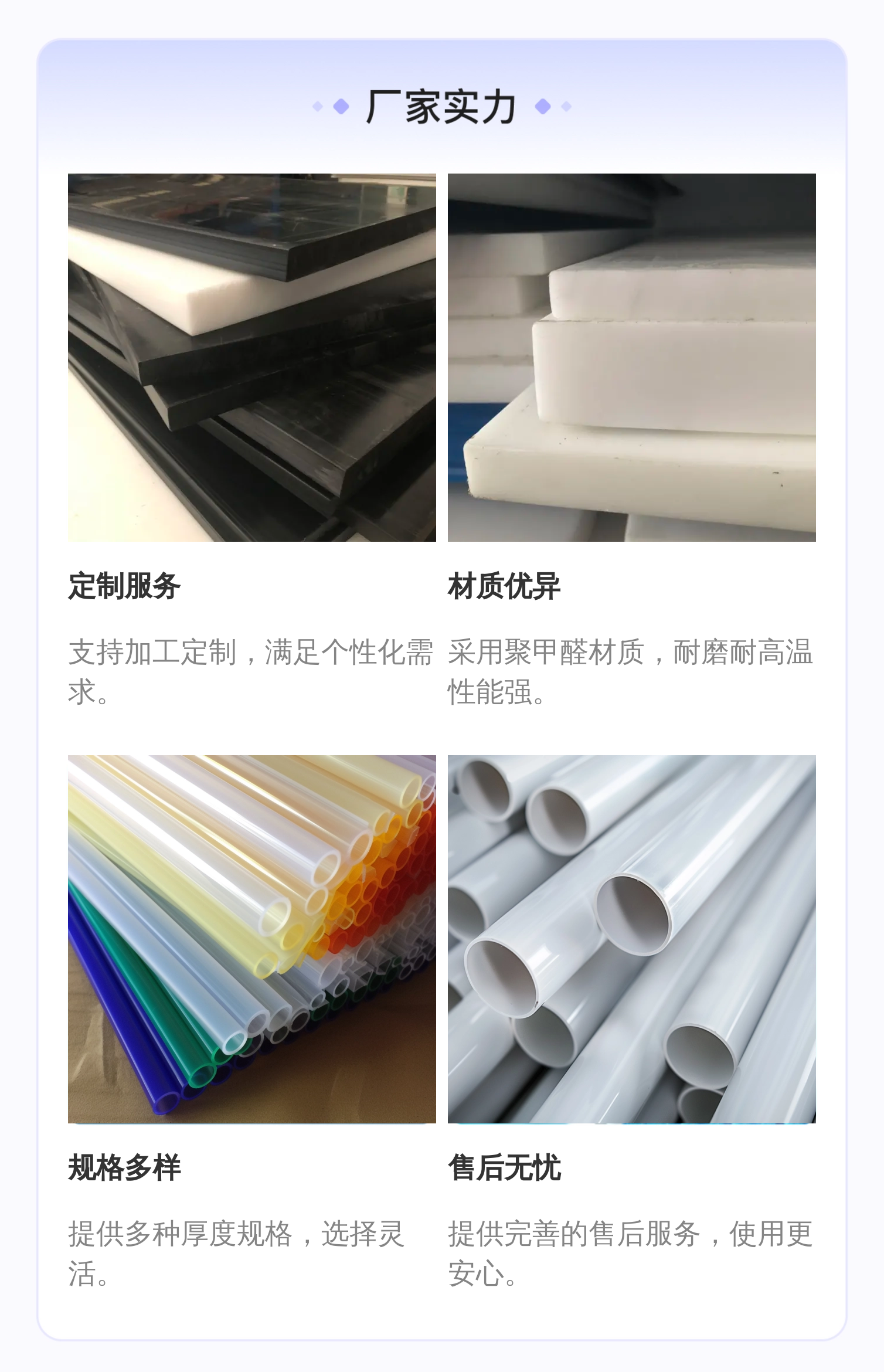尤其该系列白色POM板在耐腐蚀性方面表现稳定,能抵抗多种酸碱环境,适合多样工作条件,极大拓宽了客户的使用范围。