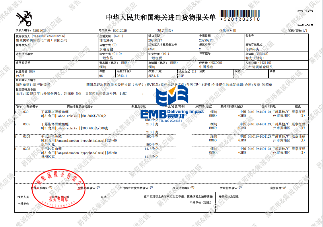 进口路线:缅甸——广州