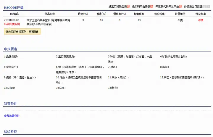1、确认翡翠原石的海关hs编码和进口关税税率;
