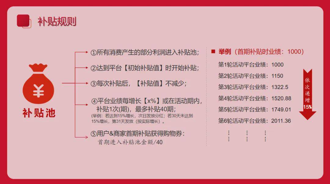 补贴池,这就好比是个存钱罐,商家每做成一笔买卖,赚的钱里要按一定比例拿出来,放到这个 “存钱罐” 里。还有个积分池,顾客和商家拿到的积分都放在这儿,攒够了就能换成消费券,回头接着买东西。