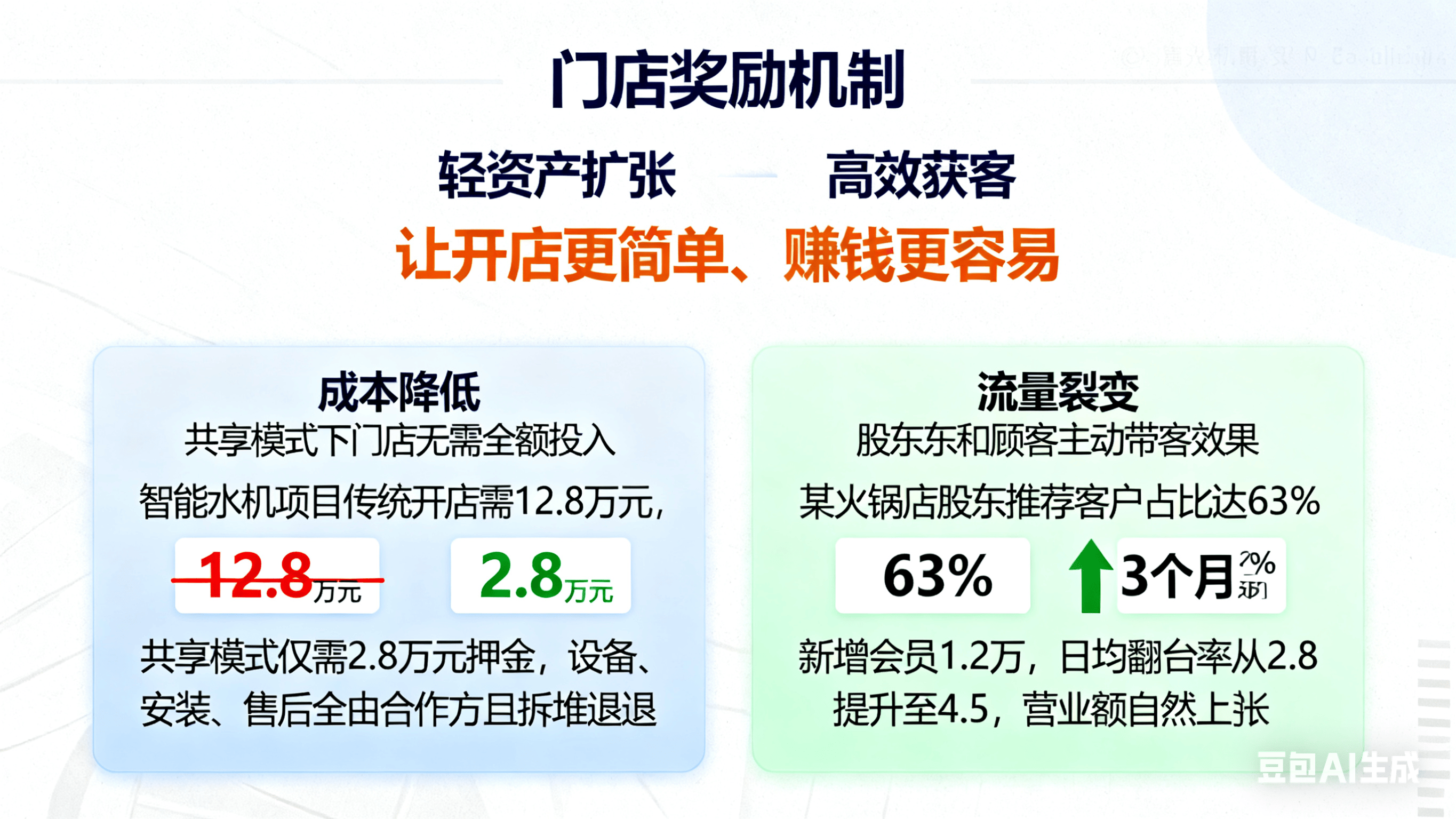 门店的奖励聚焦 “轻资产扩张” 和 “高效获客”,核心是 “让开店更简单、赚钱更容易”: