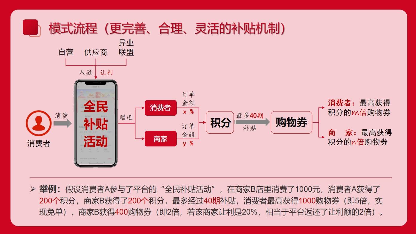 与“模式”不同的是,全民补贴模式在积分释放上采用了更为灵活的策略。商家获得的积分将按一倍返还,而用户则能享受五倍返还的福利。这一设计有效解决了商家自行的问题,增强了用户的消费信心和粘性。
