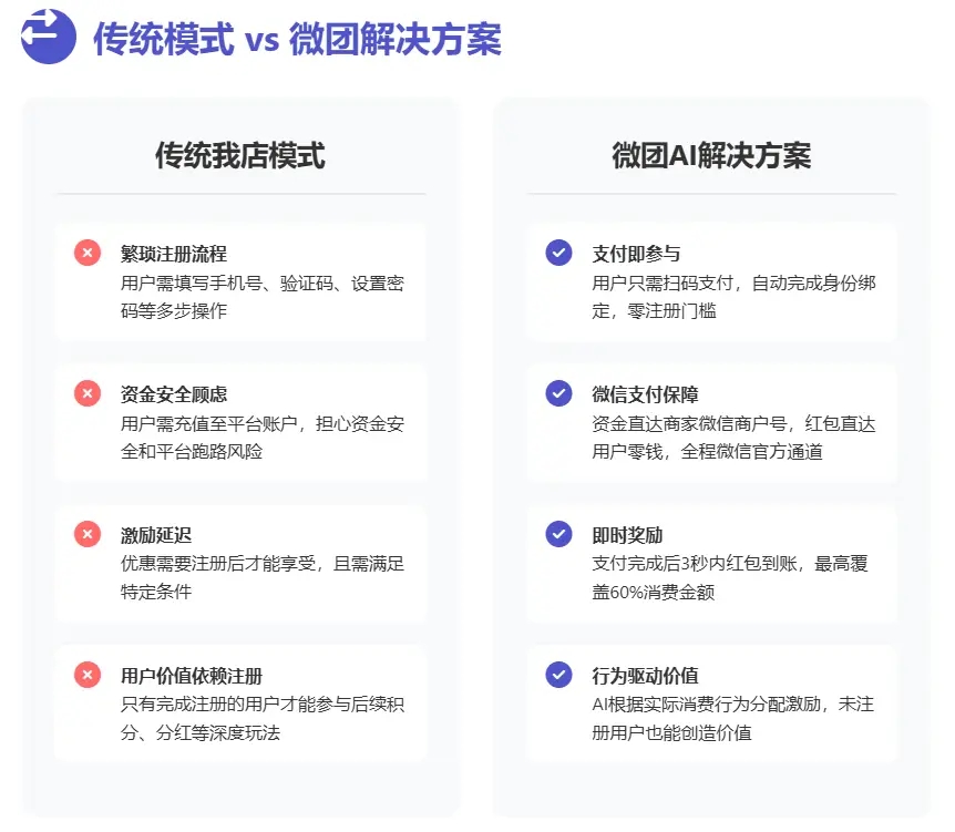 对消费者而言,消费出去的钱有机会获得回馈,增加了消费的期待感和动力;对商家来说,通过适度让利换来了持续的客流和稳定的复购,业绩自然随之增长;对推广者和代理而言,也获得了合理的收益渠道。这种多方共赢的模式,让消费者更愿意消费,商家更易经营,受到广泛认可,成为助力实体门店发展的新选择。如果你也想让消费更划算、生意更兴旺,不妨深入了解这一 AI 微团模式。