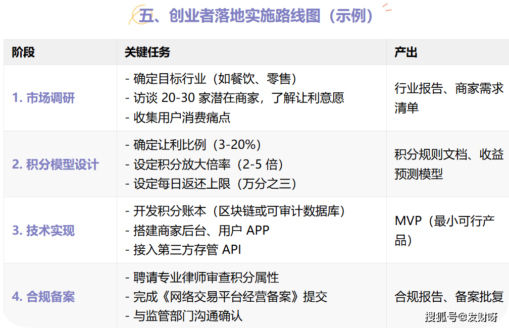 五、创业者落地实施路线图(示例)
