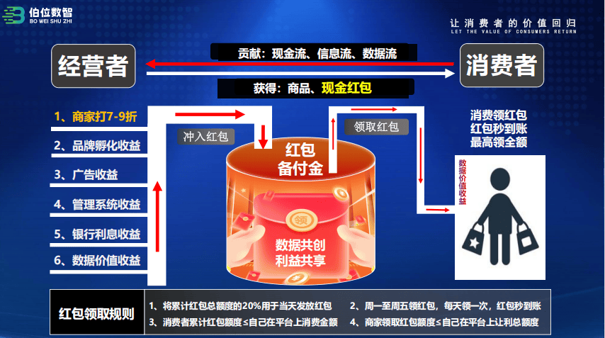 伯位数智的核心是 “红包机制”,不管是消费者还是商家,都能靠打卡获利: