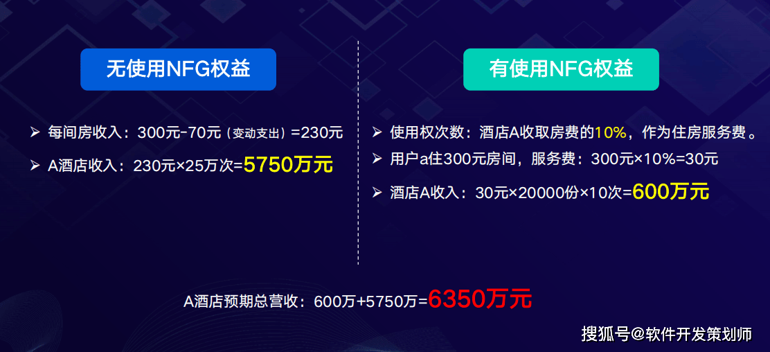 一般酒店z产数字化方案,如为 300 间房的酒店发行 2 万份 NFG 权益,每份卖 2000 元,1 份就能买,门槛较低。买了能享受使用权,1 份能住 10 次,可自住或转赠,住时酒店只收 10%的服务费;还能享受受益权,相当于当酒店“小股东”,酒店赚钱权益会升值。酒店能快速回笼z今,解决前期z今沉淀问题,之后 5 年里,不管是 NFG 用户住收服务费,还是正常卖房,都能赚钱。用户 2000 块既能住 10 次酒店,5 年后权益还能涨价,不想持有了还能转赠、拆纷卖掉。而香港 W 酒店模式在收益来源、纷红方式等方面更具特色,且依托严格的监管和完善的生态,更具合规性和稳定性。
