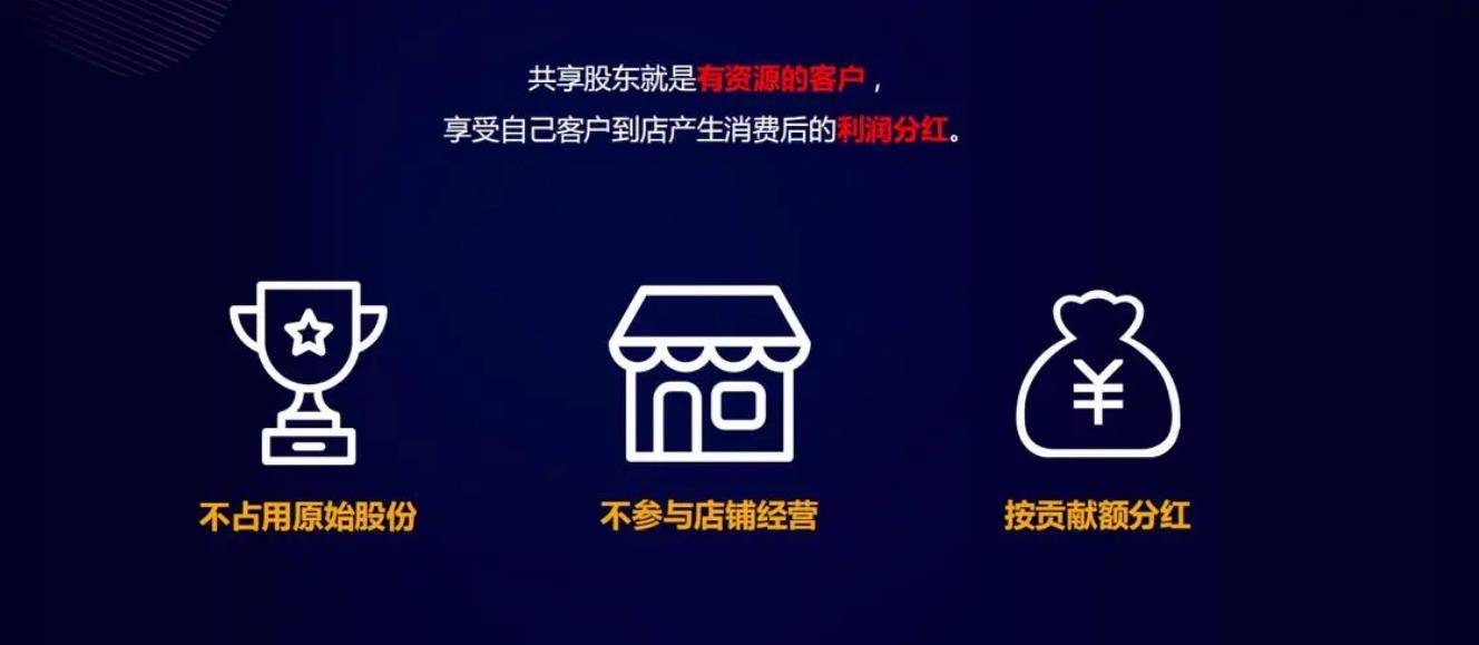 共享店铺经营模式是指将自己的店铺共享给有资源的人,这些人称为共享股东,他们通过带着自己的资源到别人的店铺里做生意,股东客源来店消费后,股东可以获得消费分红,这种模式让股东、门店和用户都可以获得多方收益。