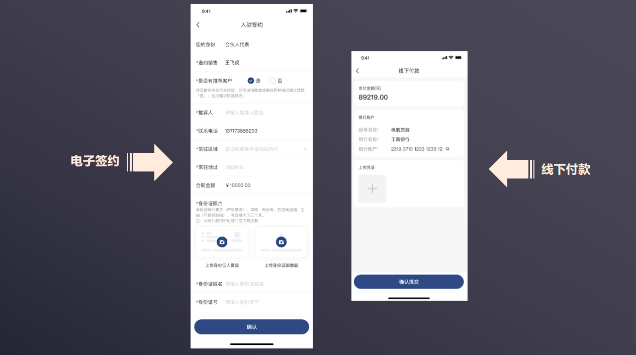 ①打款至公司企业对公账户,签电子合同排店