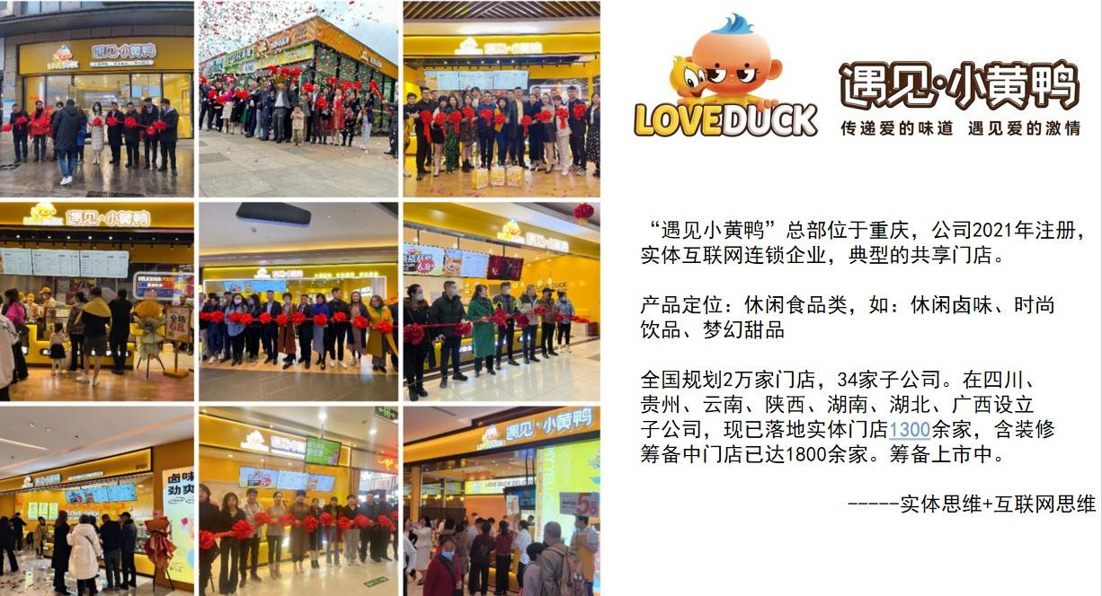 “遇见小黄鸭”总部位于重庆,公司2021年注册,实体互联网连锁企业,典型的共享门店。