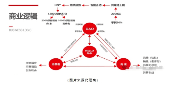 牛牛道的成功并非偶然,其背后是一个精心设计的商业模式。这个模式由四个核心部分构成:HELLO牛牛平台、DAO系统、商家和消费者。这四个部分相互作用,共同推动了牛牛道的快速发展。