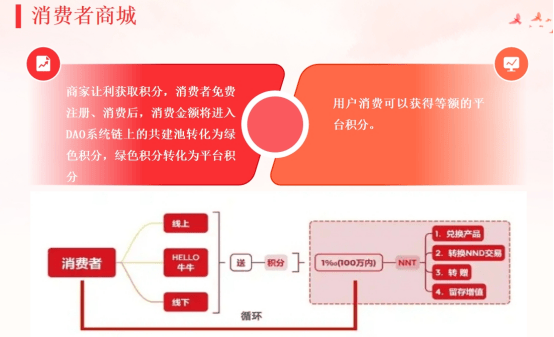 Ø 积分获取:通过m费注册成为HELLO牛牛平台的用户,消费者可以在购买商品、推\荐其他消费者或商家加入平台时获得绿色积分和优惠券。