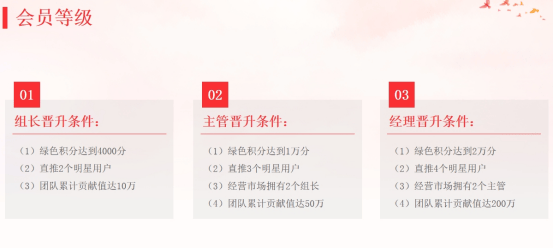 分级制度将用户分为多个级别,如组长、主管和经理等,并为每个级别设定了明确的晋升条件。这种分级制度的优势在于它鼓励用户不断提升自己的参与度,向更高的级别晋升,从而获得更高的奖励。