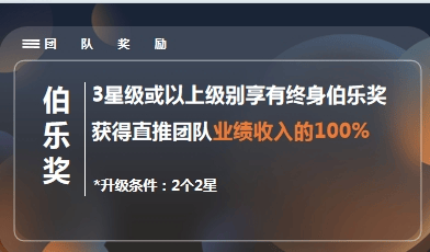 当消费者晋升为三星及以上级别的创客(或合伙人)时,他们就可以享受直属下级团队的伯乐奖励。这意味着,当他们成功推荐并培养出更多高星级创客(或合伙人)时,除了能够获得个人推荐奖励和团队级差奖励之外,还能额外获得下级团队业绩的一定比例作为奖励。