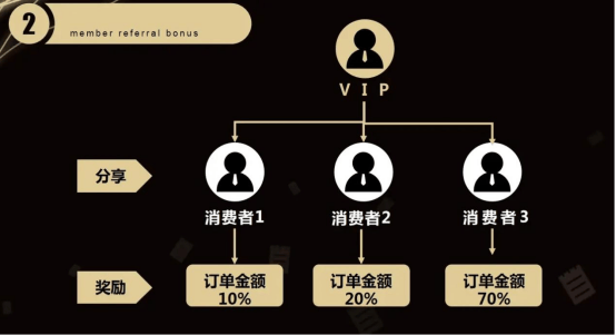 这一层级奖励机制的设计,有效激励了消费者通过推荐和培养更多的下线成员来扩大自己的团队,从而享受团队业绩带来的额外奖励。这不仅仅是对个人推荐行为的激励,也鼓励消费者在发展下线时投入更多精力,推动平台的裂变式增长。