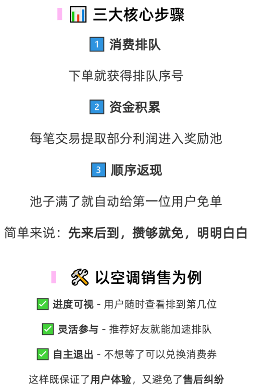 为了进一步提升用户的参与积极性,加快整个流程的运转速度,“排队免单”模式还精心配套了一系列核心机制。
