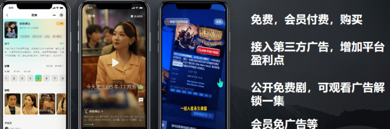 围绕“内容变现+用户赋能”双核心,既激励内容方产优质剧,也促用户参与传播消费;分润透明可算,降合作信任成本、引更多内容方入驻;会员+广告双引擎,保现金流的优化体验与粘性。
