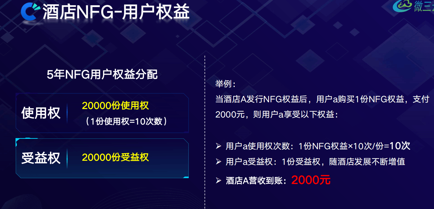 这个方案聚焦传统重资产领域,尤其适配酒店行业。面对投资门槛高、固定资产占比大、资金周转慢等难题,方案通过将酒店实体资产(如物业)以RWA方式上链,转化为可流通的数字权益(NFG),助力资产实现轻量运营。