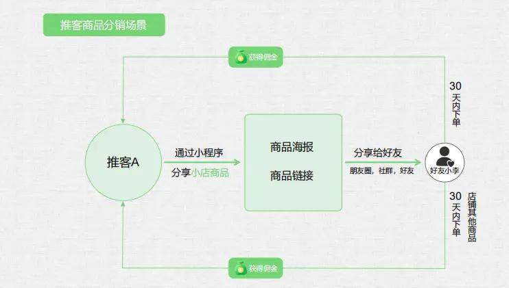微信作为平台提供者,构建了商品库API接口、订单追踪系统等基础设施,并通过直播挂载链接、搜一搜优先展示等流量扶持政策,有效降低了推客的运营门槛。平台设计的锁客机制(即用户首次点击链接后30天内成交,推客均可获得佣金)及佣金结算规则,确保了交易过程的安全性与利益分配的公平性。