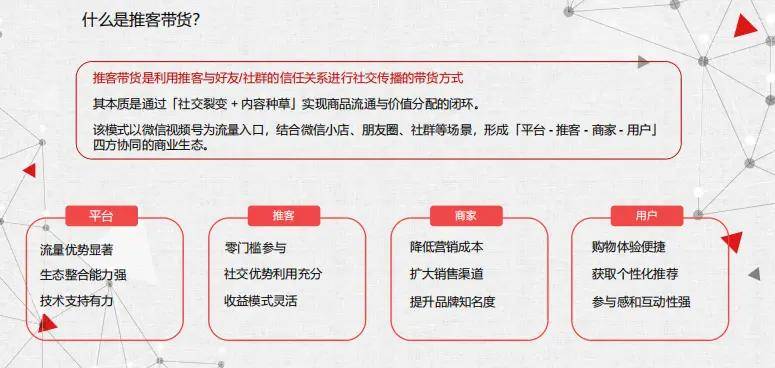 视频号推客模式的本质,系腾讯将微信生态所积累的社交资产转化为商业价值的系统性工程。其核心架构由四大主体构成: