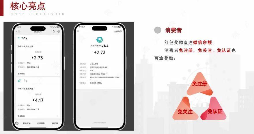 其迅速获市场认可,关键在于解决线下消费难题。传统引流流程繁琐、信任度低,AI红包模式化繁为简,实现消费者、商家、代理三方共赢。