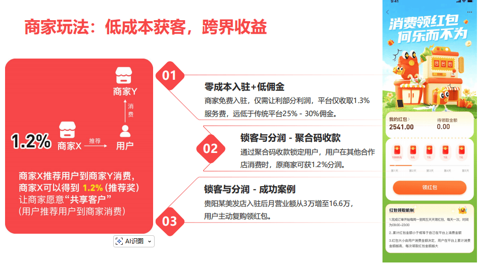 降低获客成本:将原本用于广告投放、平台佣金的支出,转化为红包形式,吸引用户主动消费,无需额外增加投入就能获得精准客源;
